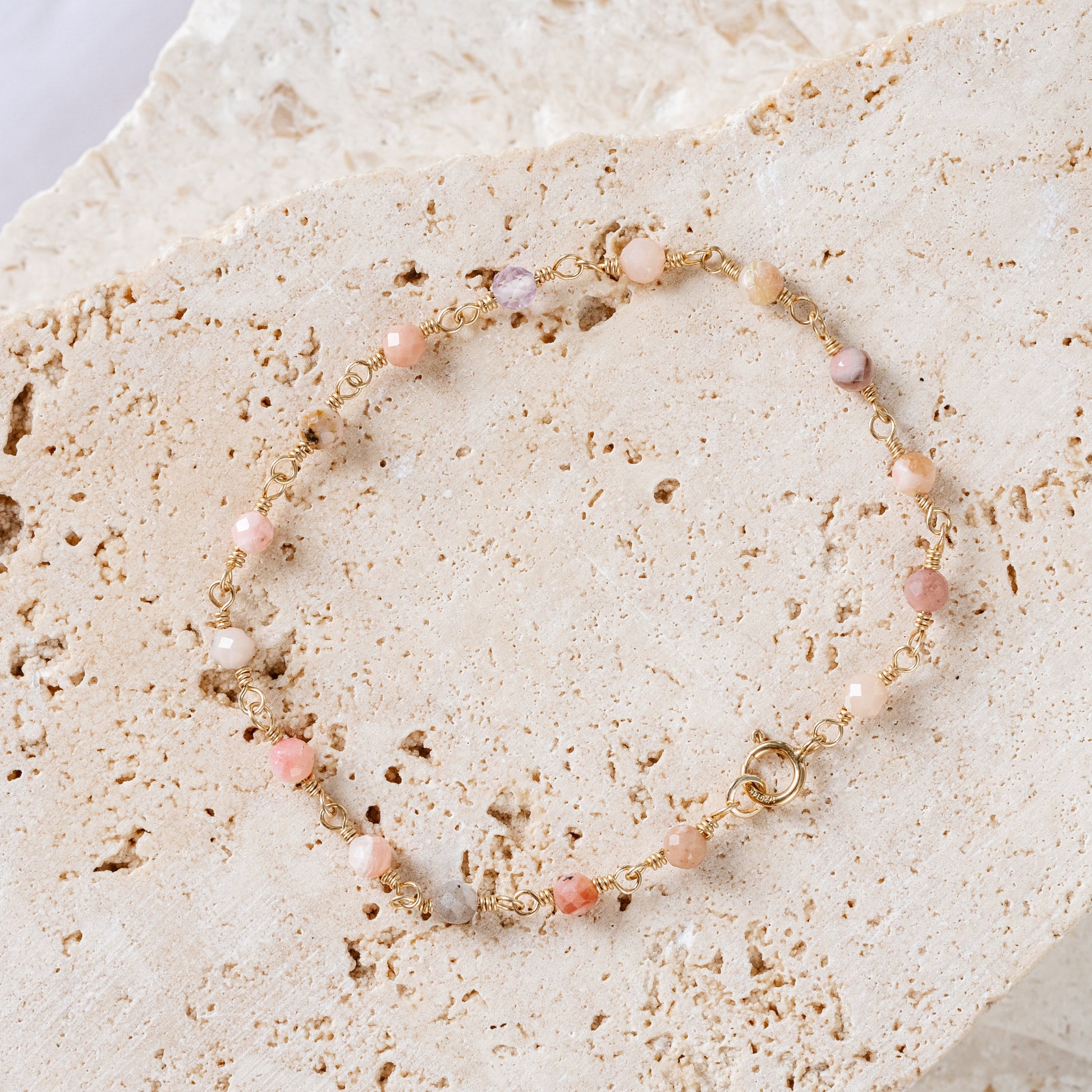 18.5cm bracelet made with gold filled wire and pink opal beads.