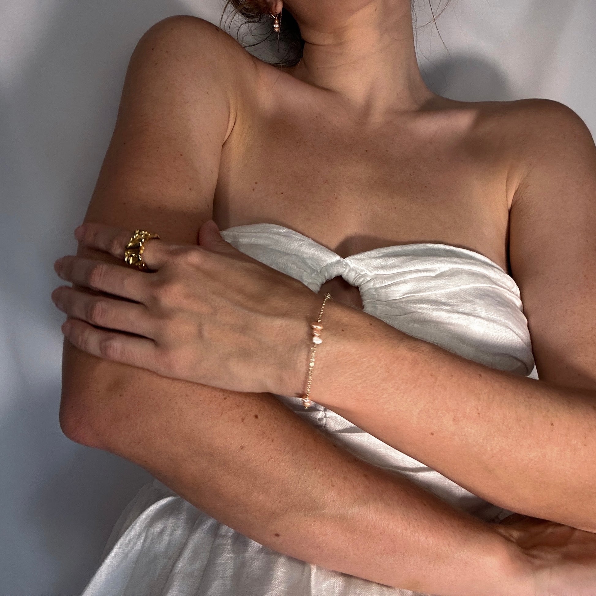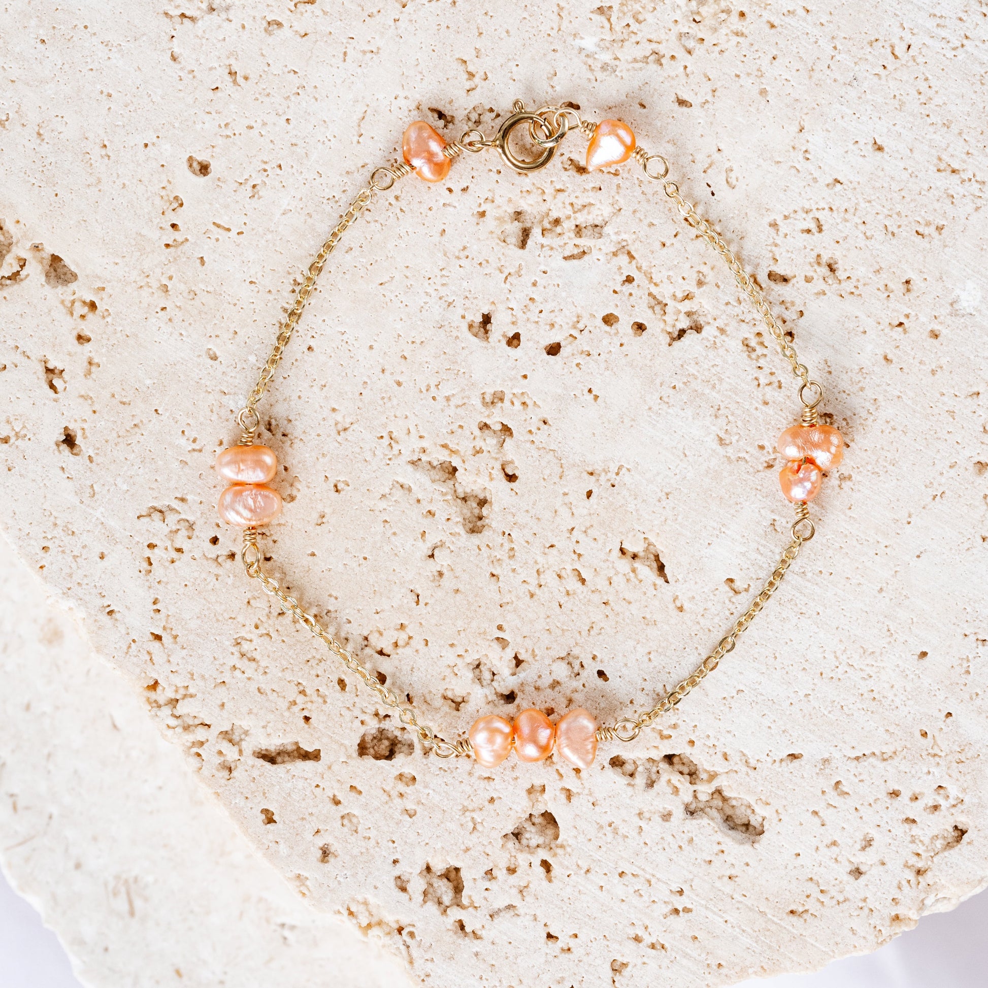 17cm bracelet made with gold plated chain and freshwater pearls.