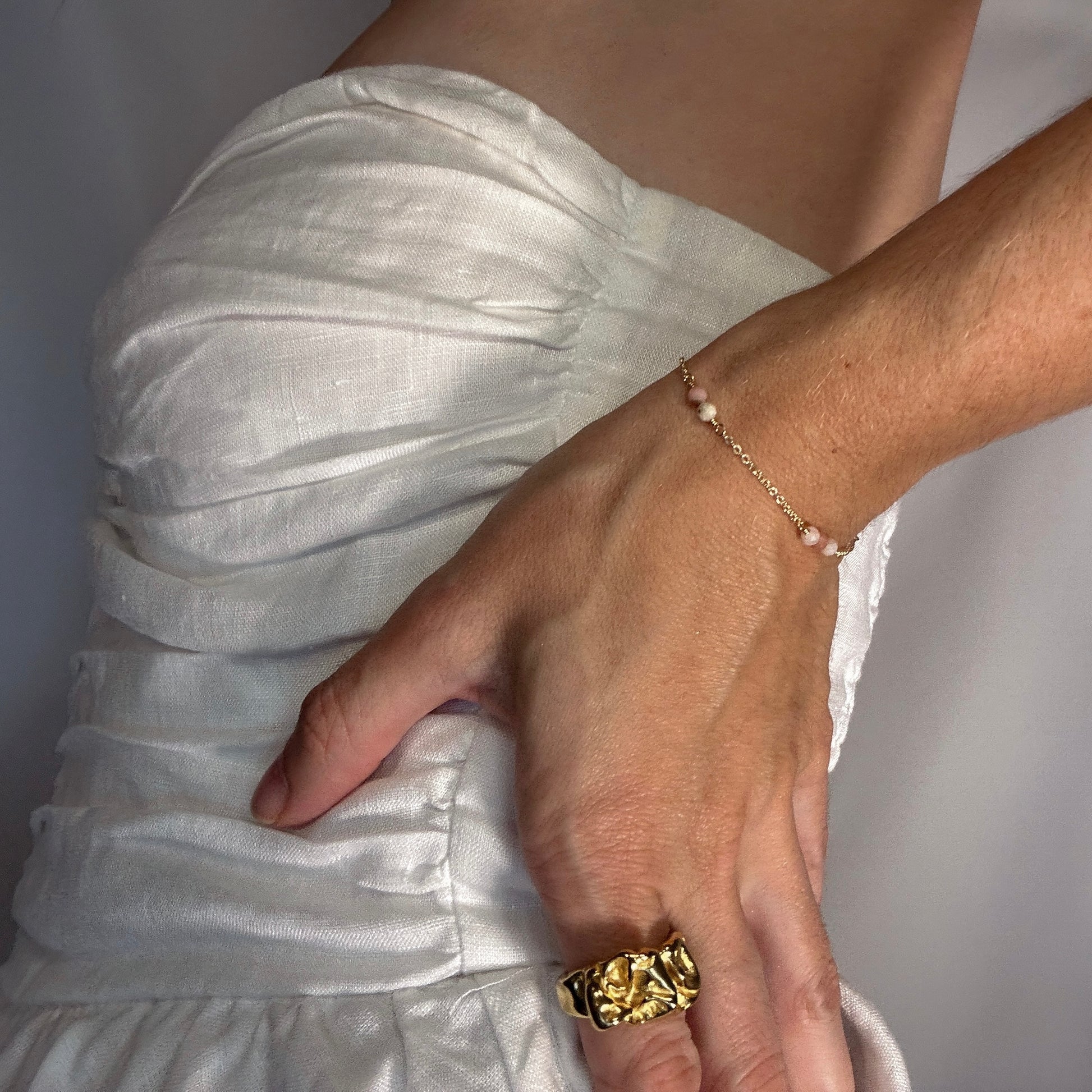 And although this is still best practice, with our stainless steel pieces you don’t need to be quite as precious as stainless steel is a very durable material. You can go about your day with out too much worry.