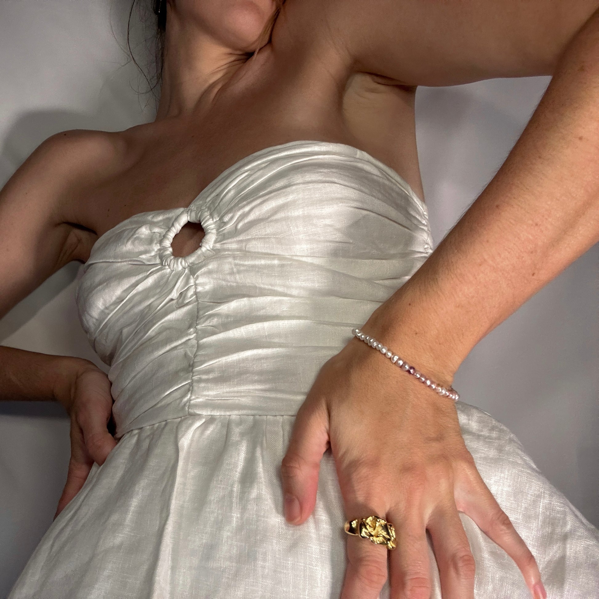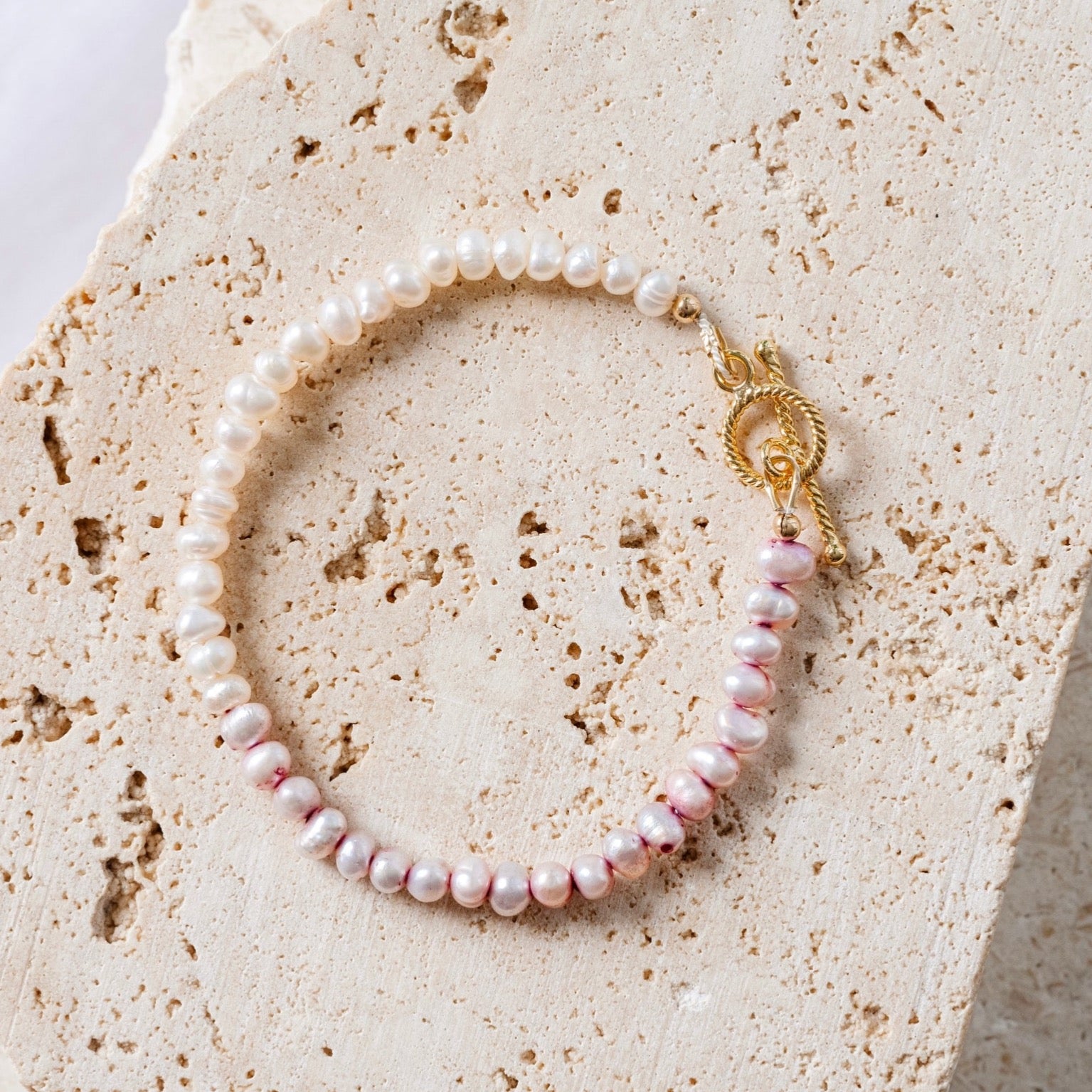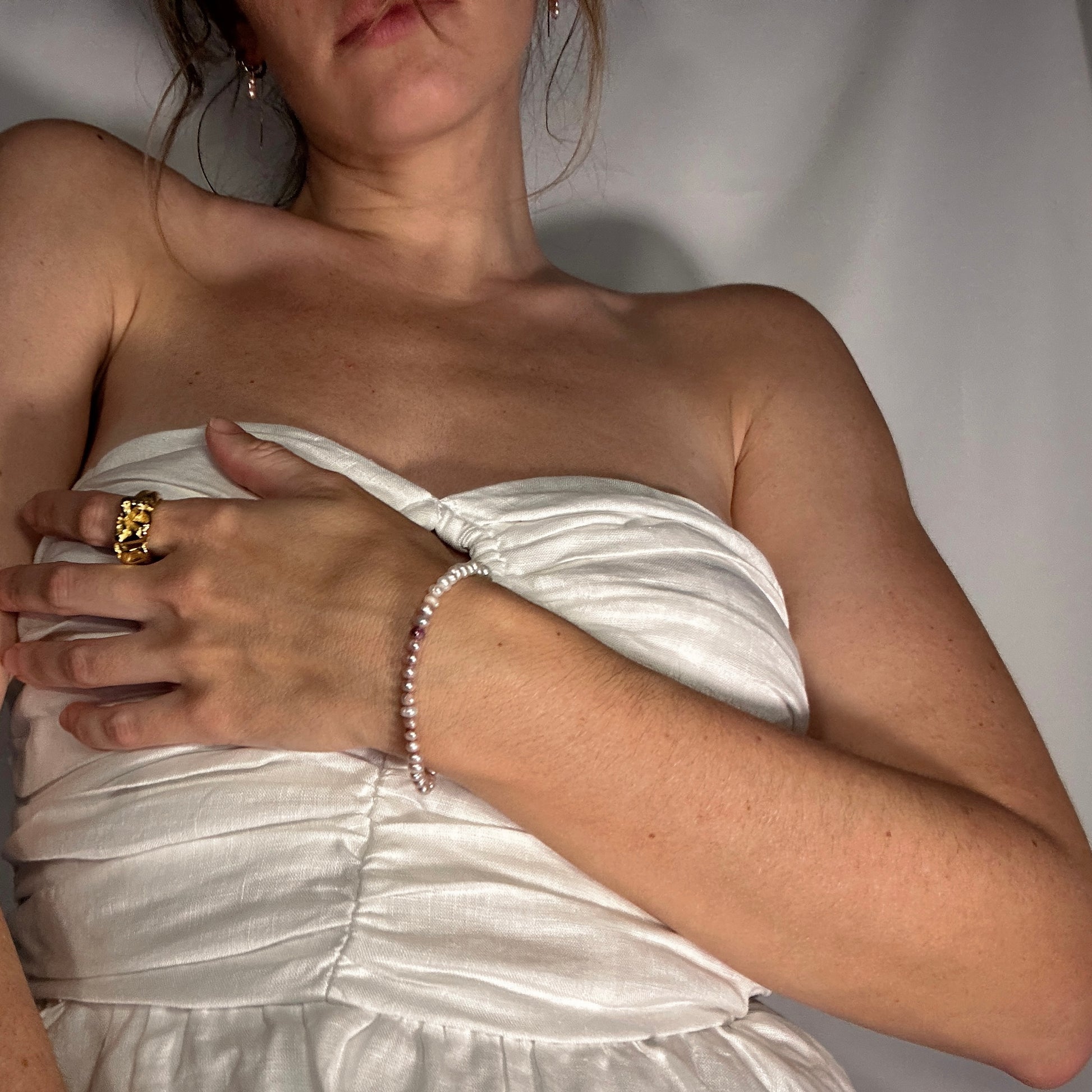 17cm bracelet. Freshwater pearls on silk thread with gold plated findings.